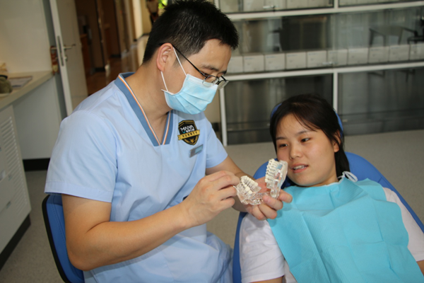 江洋主任拿着模型讲解咬合关系的调整过程 江洋主任工作的这么多年中,每天都很忙,总共完成口腔正畸治疗2000例以上,他的患者从3岁到最年长的50多岁都有。所以说矫正没有年龄限制,只要口腔检查状态良好、没有严重的牙周病、牙齿缺损、颞颌关节病等都可以进行矫正治疗,都能够达到很好的效果。 曾经有一个让江洋主任耿耿于怀的顾客,是2009年时一个从香港过来的小女孩,她属于骨性龅牙,当时为她拔了牙,矫正结束后磨牙和牙齿间隙都得到了相应控制,面型也有所改善,女孩本人和家长都觉得很满意。但追求完满主义的他觉得还是可以做得更好、更精细,奈何小女孩一家后来移民国外,给江主任留下了遗憾。 当年只知道根据患者的要求去做,而不知道如何与患者沟通自己的想法,也没有和这位患者沟通未来的规划。这个病例给他的教训是做矫正并不是知道怎么操作就行,更需要与患者更多的沟通。因为矫正讲究的是一个逻辑开放、推导演化的过程,知道可以通过什么方式达到某种效果,然后才能去操作。如果当初自己能了解到这位患者会移民,可能在矫正方案上就可以做好调整,让矫正时间缩短,达到更好的矫正效果。 让他挺自豪的病例是一个16岁的小男孩,遗传了父亲的骨性反颌,俗称地包天。很多医生都建议通过手术矫正。考虑到费用问题,也不想孩子受罪,小男孩妈妈还是想通过正畸去矫治。江洋主任通过检查诊断,小男孩下前牙比较直立,上下牙切对切的咬合还能勉强咬到,江洋主任建议顾客尝试正畸。通过下颌拔牙、及植入正畸支抗钉,经过3年的矫正后,小男孩脸型牙齿都有了很大改善。江洋主任总结说,对于牙齿矫正,坚持就是胜利。 要掌握口腔正畸新技术 学习永远是第一位