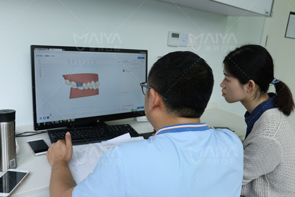 国庆期间前往麦芽口腔的顾客较多,美玲等候了一会便受到了客服专员热情的接待。美玲说她初见张超主任时,主任详细询问了她的改变需求,她是期待明年4月牙齿状况得以改善,希望门牙能达到向内倾斜的效果,帮助自己成功面试阿联酋航空。主任耐心地跟她分析说:"通过佩戴牙齿矫治器可以达到让你门牙内收的效果,但是向内倾斜对颌骨会造成损伤,效果也并不稳定。根据你的牙齿情况来看,做陶瓷托槽需要拔牙,矫正时间会比较久一些;佩戴隐适美隐形牙套可以不用拔牙,并且还能达到较好的效果,佩戴更舒适,但是价格相对会比较高,对于刚毕业的你可能有点经济负担;佩戴时代天使隐形牙套则价格低些,但是也能达到满意的效果。目前麦芽口腔开通了分期付款,对于你来说比较合适。在做矫正前建议你提前处理好口内那5颗蛀牙,对矫正效果会有更大的帮助。"