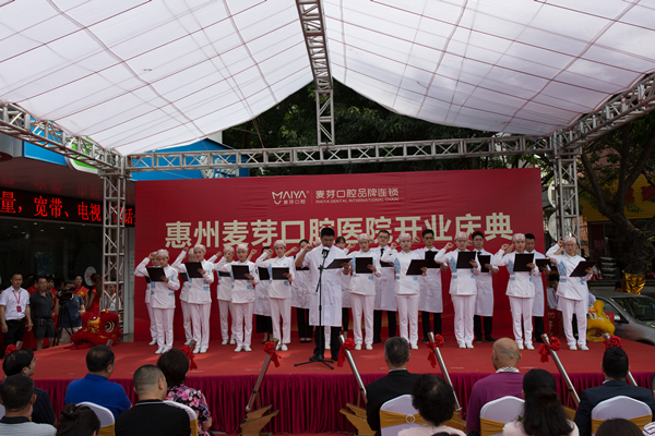 切实做到关爱惠州市民口腔健康,需要医护人员有一颗为口腔医疗事业献身的决心,为此,惠州麦芽口腔医院技术院长王济良带领医护团队在现场嘉宾的注目下郑重宣誓,心怀诚信爱岗,专注为民的承诺。伴随着礼炮声,现场嘉宾上台剪彩,共同见证初生惠州麦芽口腔医院正式开业!