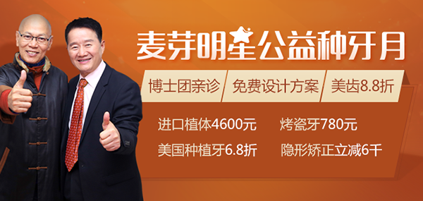让更多的缺牙市民享受到品质好牙,麦芽在拥有高配置的软硬件设备的条件下,更多的让利为民,即日起麦芽启动明星公益种牙月,现在网络报名参与的顾客将享受美齿全线8.8折的优惠,还有更多的超值看牙福利: